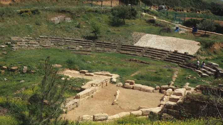 The Theatre : it was built during the hellenistic period (3rd-1st c. B.C.) in the same axis as the temple. It had no front scene, but had 10 sectors in the cavea and en altar in the middle of the orchestra. It was used for the attendance of religous ceremonies concerning the initiation of the pilgrims.