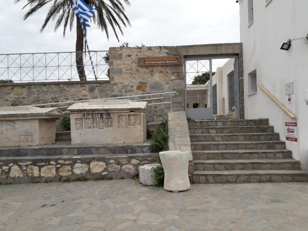 The museum was founded in 1960, when a large room was built next to the High School, to house the antiquities which were until then kept in the cells of the Katapoliani monastery. A second room was built at the end of the 1960’s and further extension work of the museum began only recently, in 1995.