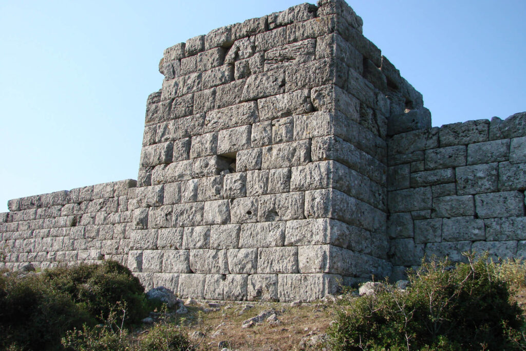 The archaeological site of Eleutherai, on the old Athens-Thebes National Road, north of the Villia junction, encompasses part of the lowland and rocky hill, where the ancient fortress, known as Gyftokastro, stands. Eleutherai was allegedly the birthplace of Dionysus, who founded the homonymous city and was thus called Dionysus Eleuthereus. Originally a Boeotian city, Eleutherai went over to Athens in the sixth century BC. The cult statue of Dionysus Eleuthereus was reportedly moved from Eleutherai to Athens on Peisistratus’ orders, leading to the establishment of the homonymous sanctuary on the south slope of the Acropolis. Strategically located on the borderline of the Athenian territory, with control over the narrow passage between Athens and Thebes and overlooking the plain of Oinoe, Eleutherai was part of the Athenian defence network in the fourth century BC. The archaeological site has been cleared of undergrowth.