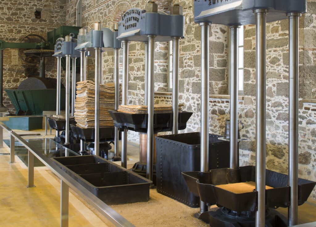 The Museum of Industrial Olive-Oil Production in Lesvos aims at presenting the industrial heritage of the island, not only in the oil production sector but also in the wider field of technological development, as well as projecting it against its architectural, social and cultural background.