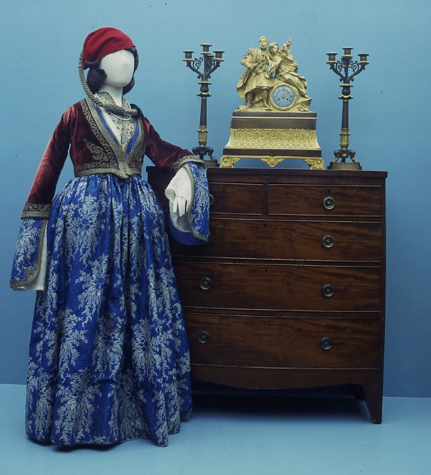 Η είσοδος του Μουσείου είναι διακοσμημένη με έργα του γνωστού καλλιτέχνη Φαίδωνα Πατρικαλάκη. Στο 1ο και 2ο όροφο του Μουσείου παρουσιάζεται η μόνιμη έκθεση. Στο μέσον της μεγάλης αίθουσας είναι τοποθετημένοι αργαλειοί, κασέλες κ.ά. Στο τέλος του ορόφου βρίσκεται το καφενείο του Μουσείου, όπου προσφέρεται δωρεάν καφές ή χυμός. Το καφενείο είναι διακοσμημένο με έργα του γνωστού καλλιτέχνη Φαίδωνα Πατρικαλάκη. Στο 2ο όροφο συνεχίζεται η έκθεση, με φορεσιές, όπλα. φιλελληνικά αντικείμενα κλπ. από διάφορες περιοχές.